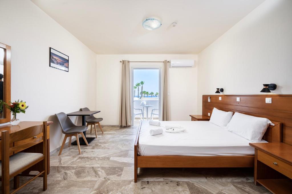 Your demands for a wonderful vacation experience will be met at Mammis Beach Hotel in Kos: gorgeous rooms, first-rate services, a fantastic location, and the best hotel personnel. The goal is to make sure that visitors are given the utmost comfort throughout their time at the accommodation. Enjoy comfort and leisure in the cozy hotel rooms of Mammis Beach, which provide breathtaking views of the sea and pool as well as a lovely setting for your visit. Come and enjoy a warm and comfortable environment that has all you need for a comfortable and enjoyable stay. Breakfast is served every morning to start the day for sightseeing in Kos. Have fun at the swimming pool and relax at the bar for a drink. Wifi access in covered throughout the property and parking is available for your private or rental car.