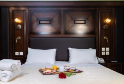 Elegant rooms with free Wi-Fi and free parking are available at the Dellas Boutique Hotel, which is located in Kastraki, the village at the base of the Meteora Rocks and just a short distance from the Monastery of Saint Nikolaos Anapafsas. Tastefully decorated rooms with views of Meteora, the mountains, or the garden are available at the stone-built hotel. Every large room has a hair dryer and is en suite. The hotel's breakfast hall serves a buffet breakfast every day that consists of fresh fruits, vegetables, Greek yogurt, and homemade marmalades. Additionally, the Dellas Hotel has a bar with a fireplace and a lounge room with satellite TV.