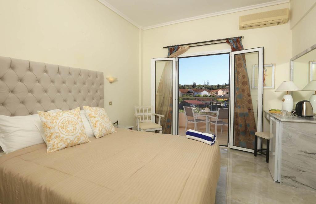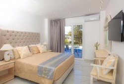 This Corfu's accommodation has 88 rooms, divided into a total of 10 different room types, including 4 Rooftop Penthouse Rooms and 20 Swimup VIP Rooms. All are equipped with with modern furniture and a satellite flat-screen TV. They also come with a fridge, a direct-dial phone, a hair dryer, a high-speed internet connection, a kettle and a safe deposit box free of charge. They also include a balcony. The 18 rooms of them have a bathroom with a walk-in shower, while the 12 of them have bathtubs. The Cavomarina Beach Hotel offers a Greek international a la carte restaurant and bar that is open late and offers a luxurious experience all day long. Savor delectable cuisine and unhurriedly sip sophisticated beverages to truly experience a Greek holiday.