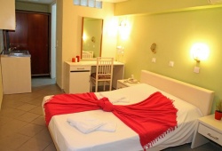 The Mediterranean Blue Hotel in Kavos has five buildings with fifty hotel rooms. The main structure is centered around the central swimming pool and has classic Venetian design. A bridge connects it to the Mediterranean Blue South building, which also features our seaside cottages. There are rooms for 2-4 and even family rooms with all the convenient amenities. Sea View Rooms are in seperate buildings 20m from the main buildings and on the beach. All room types in these buildings have sea views.