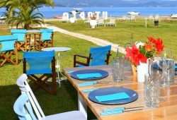 Situated directly in front of Kavos Beach on the enchanted island of Corfu, the Utopia Kavos hotel features a sun deck with a lovely garden and a seasonal outdoor pool. The rooms have a private bathroom with a bathtub or shower, a well-equipped kitchenette, a private balcony, and lovely décor. Every room has air conditioning and a smart TV, and WiFi is available everywhere. By the pool, there is a bar for your refreshing beverages and a restaurant to taste the best cuisine it offers. The distance to Kavos's center is just 500 meters from Utopia Hotel. The closest ports are Lefkimmi and Corfu International Airport, which are both 40 and 5 kilometers away, respectively.