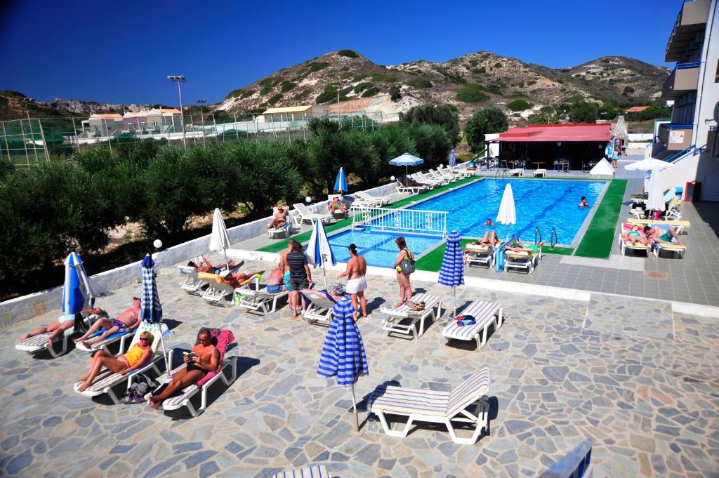 The Hotel Athinoula is located in a quiet area of Kefalos, one road above the main one, but all the facilities are easily accessible on foot. It is 500 meters from the resort center and 150 meters from the beach. Numerous restaurants, tavernas, and bars are close by. The rooms are neat and come with air conditioning, a refrigerator, a coffee machine, a bathroom with a hairdryer, a telephone, and a balcony. Visitors can enjoy a sun deck, a verdant garden, and a swimming pool with a view. The hotel has a coffee shop, a bar, and a Greek restaurant that is suitable for families. Free Wifi is available in all areas; there is free parking for your vehicle. The Athinoula hotel is situated 12 kilometers from Kos International Airport, close to places like Agios Stefanos Beach (1 km) and Kamari Beach (2 km), and just a short stroll from Paralia Kefalos Beach.