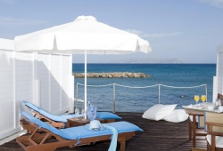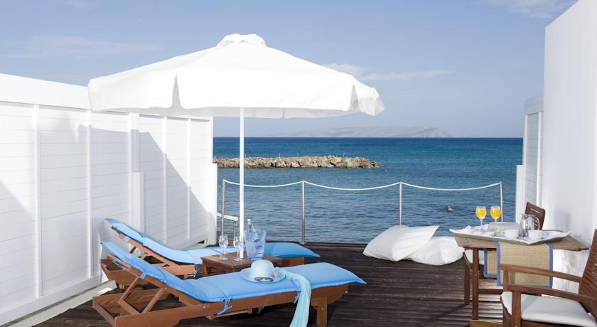 Knossos Beach has three restaurants and three swimming pools. There is a bar, loungers, and umbrellas on the beach. Set within lovely gardens, the whitewashed bungalows and suites include terraces with views of the sea. Satellite TV and floor to ceiling double-glazed windows are features of every air-conditioned apartment. Across the street at the Knossos Boutique are the Signature, Comfort, and Two Bedroom Comfort accommodations. Breakfast, lunch, and dinner buffets are available in the main restaurant. Greek food created with fresh local products is served creatively to visitors at the exquisite a la carte restaurant. While the main bar provides a wonderful view and a laid-back environment, the pool bar sells beverages and ice cream. Book Now! and compare rates offered by various online booking services.
