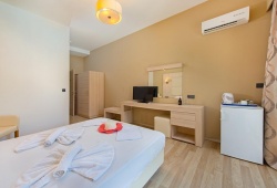 Each room has a private bathroom, a balcony or veranda, a minibar, air conditioning, a refrigerator, and satellite TV. There is a porter, a PC area, a 24-hour reception desk, and additional luggage storage available for a fee. In addition to restaurants, the hotel has two kid-only swimming pools with a water slide and a huge pool with sun loungers and umbrellas. The small store, gaming area, mini club, pool bar, and kids' playground are all located outside. One of the island's main locations that makes trips easier is Kolymbia, which located on the eastern side of Rhodes. The location is perfect for sports, leisurely walks in the chill, and picturesque treks after twilight. Choose the Delfinia Resort Hotel in Kolymbia for an incredible holiday and make the gorgeous Greek island of Rhodes your next travel destination.