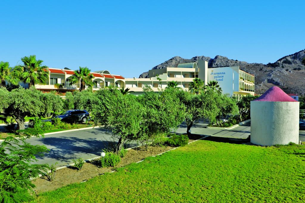 Nestled in a valley at the base of Mount Tsambika, on Rhodes' east coast, is the quaint town of Kolymbia, home to the 1991-opened Marianna Palace Hotel. Two suites and 133 double rooms make up the hotel. The many amenities offered by the hotel are a delight for visitors. The cozy rooms of Marianna palace Hotel will help you feel at home. They come equipped with a private bathroom, wardrobe, balcony, sitting area, phone, TV, air conditioning, refrigerator, hair dryer, and a safe to store your priceless belongings. The hotel's main dining room is a buffet-style eatery that serves breakfast, lunch, and supper. It specializes in serving visitors who have purchased meal packages. This Rhodes hotel has a large swimming pool with a kid's pool right next to it. The Marianna Palace Hotel offers relaxing areas such as a cool garden and poolside beds with umbrellas or olive trees for guests to enjoy. If you wish to travel to Rhodes town for the attractions, it is 25 kilometers away from the accommodation. Plan your trip to Rhodes Island and book Marianna Palace Hotel in Kolymbia for a memorable holiday. Book Now! And compare rates offered by various online booking services.