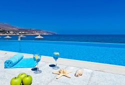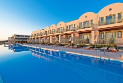 The resort has seventy-five spacious, well furnished rooms and suites with minibars and satellite TV. Every apartment has a balcony with views of the sea or the garden. Every day there's Greek breakfast offered in the dining area. Visitors can eat in the hotel restaurant or at the snack bar. They may have a drink, coffee, or snacks in the main bar and the bar beside the swimming pool.