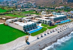 Grand Bay Beach Resort, an adult-only hotel, is located on the beach of Kolympari, a 2-minute drive from the village of Kolymπari, 23 kilometres west of Chania centre. Operating as a seaside resort that is "Adults Exclusive" (minimum age of guests is 16 years old), it provides a luxurious, child-free environment with specially designed amenities for singles and couples in a completely tranquil setting that is intended to pamper body, soul, and spirit in upgraded surroundings with impeccable service.