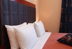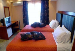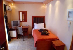 The 11-room Americana Hotel Kos Town is located around 25 minutes' walk from Port of Kos. The hotel also features Wi-Fi throughout the property. Room amenities include coffee/tea making stations, climate control, an iron and ironing board, and conveniences for entertaining. They are equipped with sound-absorbing windows and a writing table and sofa combo. In addition to amenities like bathrobes and a hairdryer, bathrooms come equipped with a separate toilet and shower. When staying at this hotel in Kos Town, visitors may take in the sea view. The Kos International ""Hippocrates"" airport is 32 minutes' drive away from Americana Hotel.