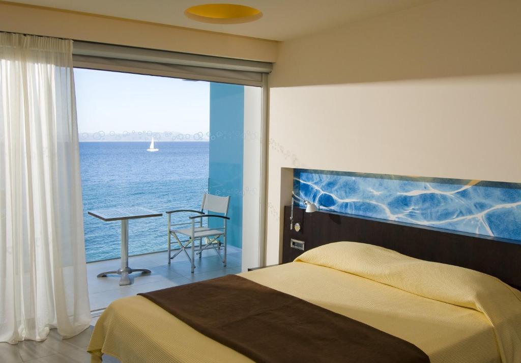 Spread equally across three levels, its thirty-six rooms and six suites provide views of the adjoining Greek border city of Halicarnassus. Most rooms have sea view and through the glass-facade balcony, guests may see the turquoise colors of the sea from the comfort of their mattresses. The bathroom and bedroom are divided by a glass panel in the wall, creating an illusion of transparency. Every room at the Kos Aktis Art Hotel has free WiFi, satellite TV, a minibar, and air conditioning. Before you go sightseeing in Kos town, start your day with a Greek breakfast. H2O Bar Restaurant serves international and Mediterranean cuisine together with a well curated wine selection.