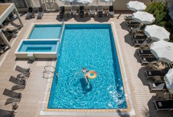 Your every need will be met by the tastefully decorated, roomy accommodations, which also provide a soothing escape from the everyday grind. Immerse yourself in the crystal-clear water of the outdoor pool and have a refreshing drink from the fantastic pool bar while lounging on the cosy sun loungers around the pool. Don’t forget to pay a visit to the hotel restaurant and experience the best of Greek gastronomy.