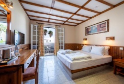 The 144 rooms of the Palladium Hotel in Kos, which is well-known for its kind hospitality and genuine character, are set amid beautiful gardens, a magnificent main Pool, and captivating pathways that lead guests to their summer home.