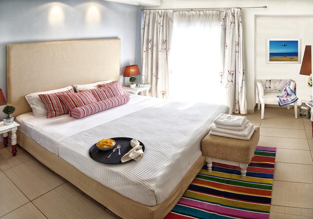 Enjoy the swimming pool to cool down with free sun beds and umbrellas for all guests, the bar for refreshing drinks and the restaurant to expereince the best of Greek gastronomy. Playground is offered for children for a variety of outdoor activities. Wifi access is covered throughout the property and parking is available for your private or rental car.