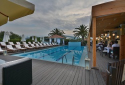 Simple, elegant artwork by Greek and international artists, contemporary lighting, and minimalist furnishings are all complemented in the rooms with contemporary conveniences and amenities. The picture you have of carefree, leisurely, cool days on vacation is completed by the outside, garden, and pool as sources of coolness on hot summer days. The area of Agrilia hotel is designed to provide you with a comfortable and restful vacation consists of a wooden deck around the pool and jacuzzi, cozy seats, vibrant textiles, plants, unique nooks, and a pool bar. Savor the ambiance of the Agrilia Hotel and just relax during your visit to one of Zakynthos' top hotels.