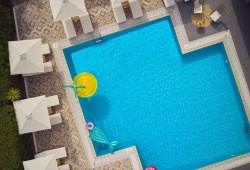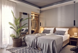 Cactus Hotel is a family run accommodation in Zakynthos situated at an excellent position, close to the beach and the renowned nightlife of Laganas, all within walking distance. These studios are ideal for enjoying the sun throughout the day and discovering the local nightlife after dusk. Cactus hotel consists of studios and apartments with an own furnished balcony, a fully functional kitchenette, a satellite TV, and some with a view of the pool. The hotel has two swimming pools as well: a larger pool that serves as the focal point of the establishment and a smaller pool just for kids. Wellness facilities include a sauna and a small gym. The cocktail-snack bar surrounds the larger one, where you may unwind on the loungers with delectable nibbles and beverages. You may start the day strong and prepared with a freshly produced breakfast, which is served early in the morning and created with local products.