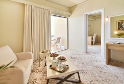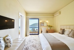 Soft colors and tasteful decorations provide a calm atmosphere that lets guests unwind after a long day. They are characterized by elegance and sophisticated taste. Perfect equipment that satisfies every visitor's desire and dedicated care ensure a stay that will never be forgotten. Each of the 64 opulent and cozy hotel rooms, many with balconies and views of the azure Ionian Sea, provides one of a kind moments of peace.