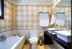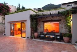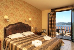 The Hotel Tesoro on Lefkada Island in Nikiana has thirty-five (35) rooms spread among six (6) bungalows, each with its own door, garden, balcony, or veranda. The bungalows are designed in an amphitheatrical style around the group's central pool. It features a family room, a bungalow suite, a triple room, four bedrooms, and a double room. Every air-conditioned room at Tesoro is tastefully designed and has a minibar, LCD TV, WiFi, and a safe. The private bathroom has a bathtub and a hair dryer and is stocked with complimentary toiletries. Visitors can take a refreshing drink at the bar or dine at the on-site restaurant. Enjoy the swimming pool for relaxing moments. Hotel Tesoro is 1 km from the beach, the seaside village of Nydri is 4 km away, and Lefkada Town can be reached in 7 km.