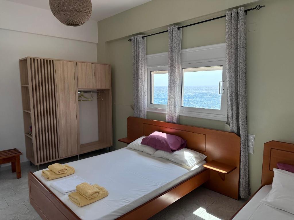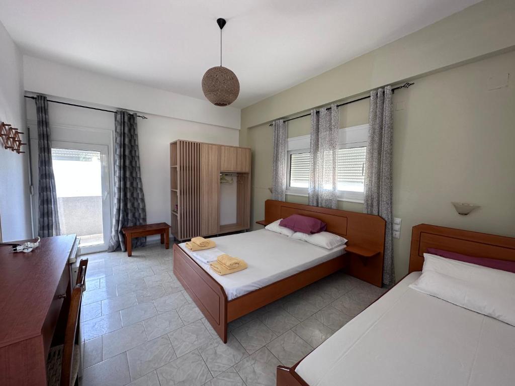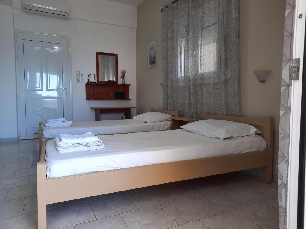 The beach at Diskos (Dytikos) is located in Crete, one kilometer west of the village of Lendas. The rooms of Voula, which include a classic family restaurant with a view of the gorgeous beach and the Lybian Sea, are located right in front of Dytikos' entrance. Voula Beach consists of eight units, seven rooms and one studio. They are equipped with air conditioning, fridge, internet, and the studio has cooking facilities. In the tavern, you may savor handcrafted sweets from the traditional Cretan cuisine with your breakfast, lunch, or dinner. The renting of the rooms is available year-round. Lendas's climate is ideal for winter travel, with nice mild temperatures during the colder months. The Museum of Cretan Ethnology is located 31 km from the hotel, while the archaeological site of Festos is 31 km distant. Visit Voula Beach to witness the splendor of Crete on the beaches of Lendas, where you will be greeted with warmth and a friendly atmosphere.
