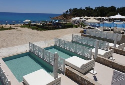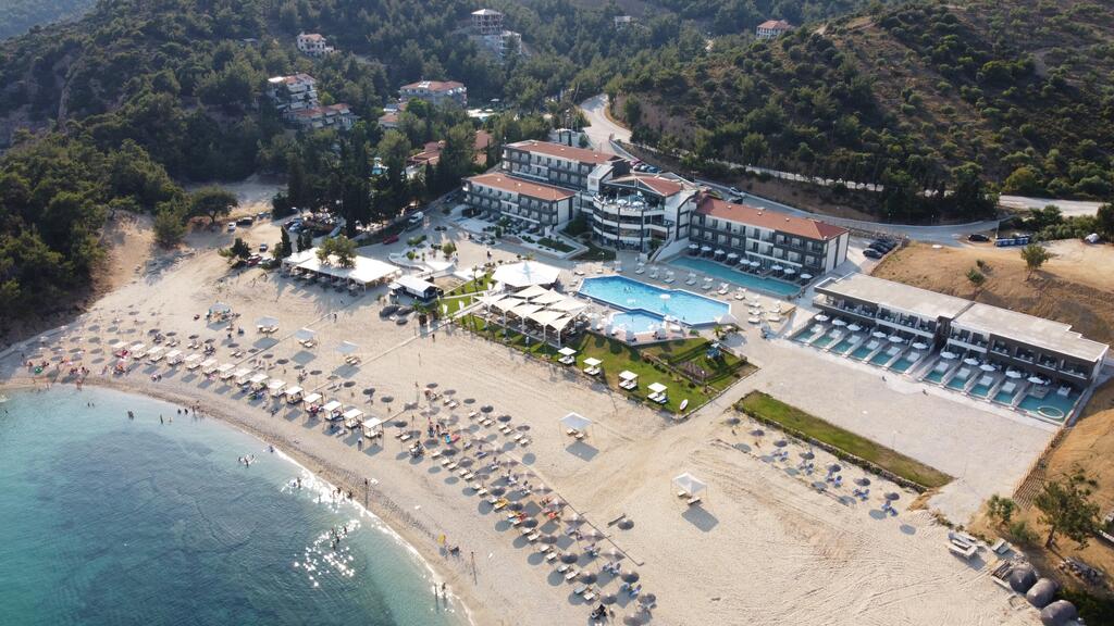 Hotel Blue Dream Palace is a great choice for couples, families, and groups of friends to spend holidays in Thassos. Nestled in the natural surroundings of crystal clear, blue seas, Tripiti beach is one of the most picturesque locations in Thassos, a famous spot close to Limenaria. A wide range of opulent rooms and suites with private pools and the most stunning views of the Aegean Sea can be found at the Blue Dream Palace Hotel. This hotel offers a wide range of amenities, including restaurants, a lounge pool bar, and spa services. You may enjoy the seaside, go on day trips to see the local landscape, or engage in various sports on the beach or at the hotel. In addition, the hotel features a store and museum where you may browse goods and discover more about Thassos' past.