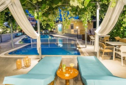The 3-star Thalassies hotel is a seafront hotel located 200 m away from the centre of Limenaria village, in Thassos. It includes a swimming pool, sauna, and gym. All rooms enjoy free Wi-Fi access. The accommodation features a Greek tavern serving local specialties on a seaside terrace. A buffet-style breakfast is offered daily, while refreshing drinks and snacks can be enjoyed at the poolside bar. There are 26 nicely furnished rooms at the hotel, each with rich colors and coordinated curtains and furnishings. They have every amenity you may possibly require for your stay. Thalassies hotel rooms have views of the Aegean Sea and Thassos mountains. They feature a satellite LCD TV, free internet WiFi, a refrigerator, a safe phone, and individually controlled air conditioning.