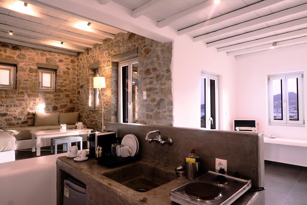 The Hotel Rizes is located in Serifos, one of the most beautiful islands in the Cyclades. It is a new accommodation that consists of 14 independent apartments of 40–50 m2 and 2 suites (senior and superior) of 60 and 97 m2. Each suite features a private swimming pool. All apartments and suites have private terraces with a beautiful view of the port and Hora of Serifos. They can host 2–4 people. The recently opened Rizes hotel in Serifos offers spacious apartments and they include air conditioning, a kitchen, a bathroom with a built-in shower, and a hair dryer.