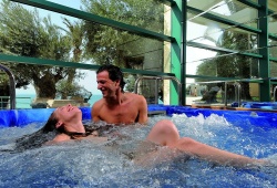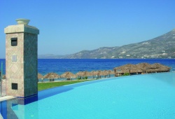 The full-service spa, swimming pool area with fountains and lazy rivers, and private beach are enjoyed by guests. The opulent, air-conditioned rooms have flat-screen TVs with satellite and pay-per-view channels, lounge spaces, and air conditioning. Included are cosmetics and slippers. Every balcony offers a breathtaking view of the ocean. Three restaurants are available at this five-star hotel in Loutraki: the casual Deep Blue, the sophisticated Aquarius, and the sushi-focused Oceanos. Furthermore, three locations are offered for refreshments, beverages, and snacks. At the Loutraki Pirates’ Club children are invited to participate in creative activities, interactive games, or play at the play stations on computers.
