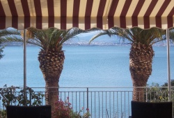 Theoxenia is a family-run hotel in a prime location, directly across from Loutraki's famous thermal spa complex and with easy access to a quaint cobblestone beach. Wi-Fi, air conditioning, a minibar, satellite/cable TV, a phone, a clean bathroom, and a windy balcony with peaceful views of the majestic Mount Geraneia or the Gulf of Corinth are all features of every accommodation. Enjoy a fresh breakfast on our coastal garden terrace surrounded by palm trees, hire a bike and explore beautiful cycling routes, unwind on the seaside promenade, and see a film at the ancient "Electra," one of Greece's oldest outdoor theaters. Enjoy a mountain tea or local spirit by the enormous fireplace in the winter while spending time with your family. Near the Theoxenia hotel are many cafes, restaurants, and shops, as well as public transportation options. Local attractions to explore while staying include the Corinth Canal, Lake Vouliagmeni, Ancient Korinthos, and Loutraki Central Beach.