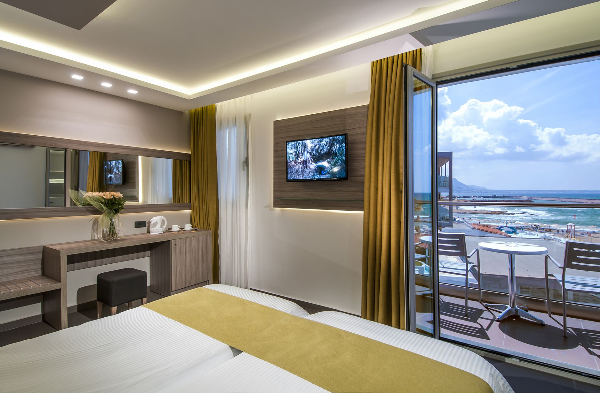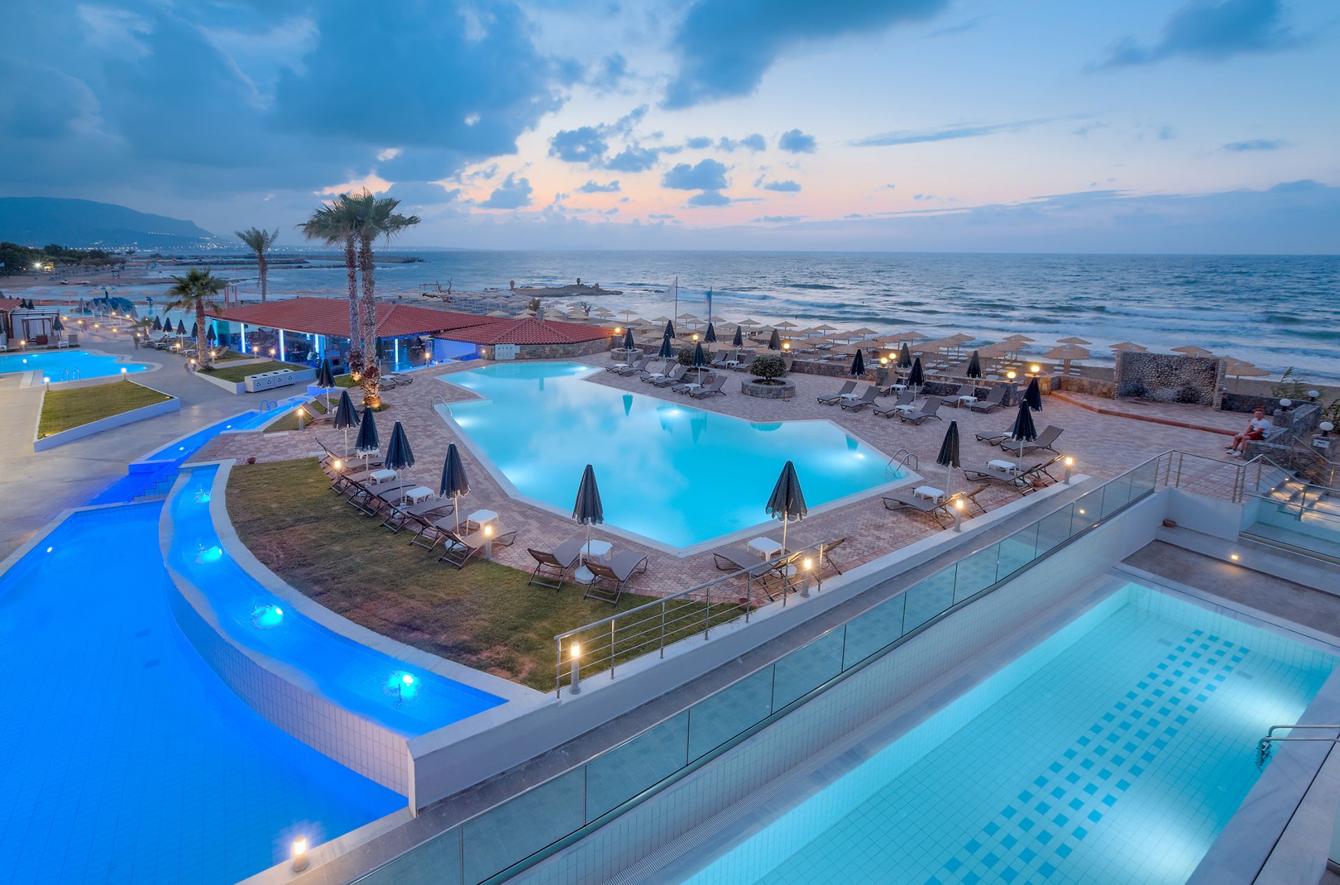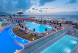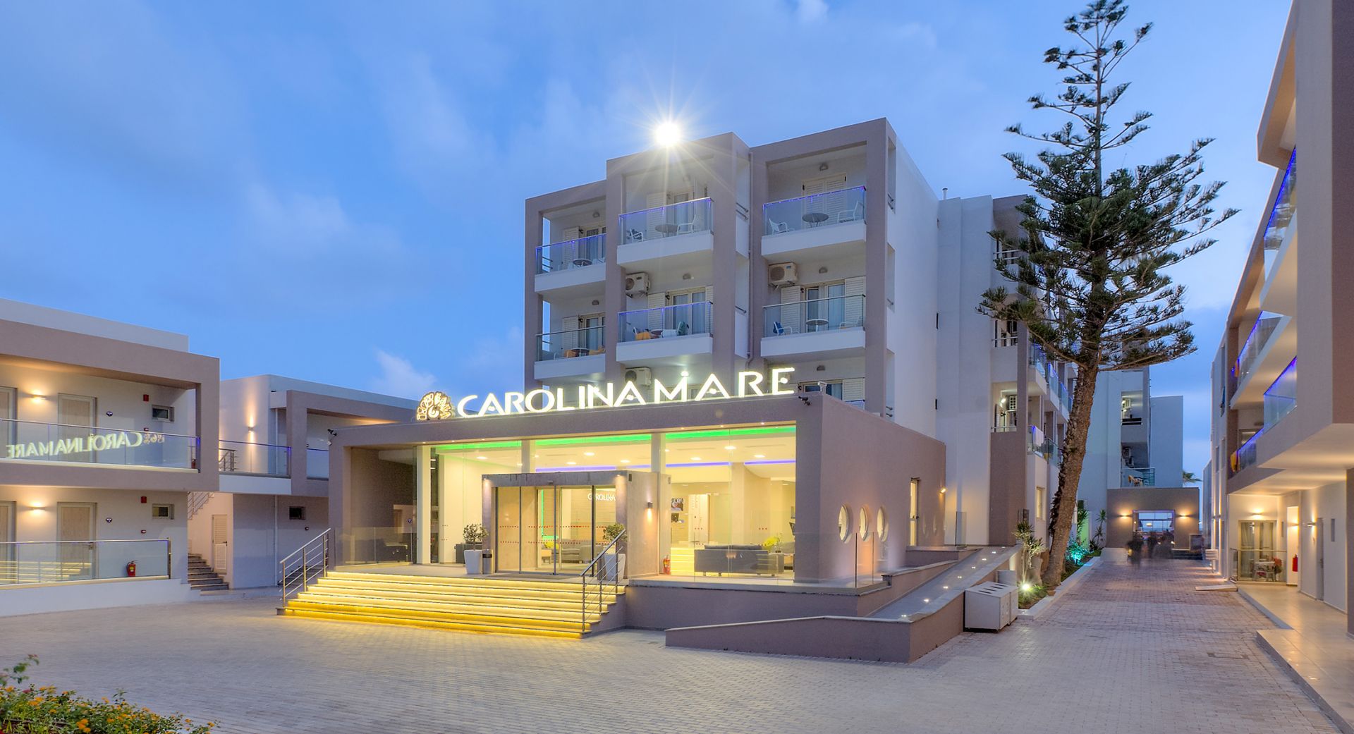 Carolina Mare is a modern beachfront hotel in a quiet location, ideal for couples and friends, with authentic Greek hospitality waiting to welcome you. Marvellously located on the delightful and quiet sandy beach in the bustling resort of Malia on the northern shore of Crete island, the Carolina Mare Hotel is a popular choice for a relaxing holiday in Crete. The elegant rooms have colorful touches, flat-screen TVs, mini fridges, tea and coffee equipment, as well as balconies or terraces. Some offer views of Malia bay and/or direct access to the pool. Available facilities include 3 restaurants, 3 bars, 4 outdoor pools (2 for children), many sunbathing areas, a children's playground and a private beach area. Breakfast, spa treatments, water sports and entertainment are offered. Located on a quiet beach Carolina Mare Hotel is 2 km from the archaeological site at the Minoan Palace of Malia. Heraklion Airport is 30 km away from the property. Book Now! and compare rates offered by various online booking services.