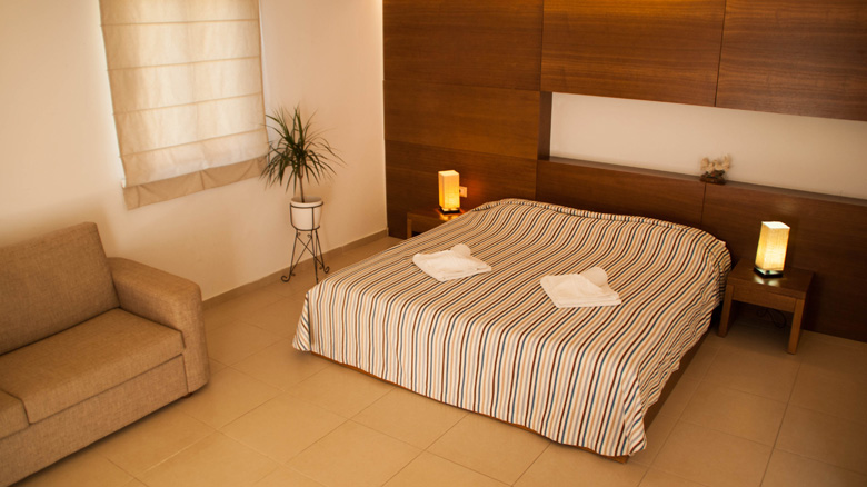 Matala Bay Hotel is a pleasant accommodation offering hospitality and family warmth with attentive services for anyone to have their ideal vacation in Crete, combining peacefulness and tranquilly in a beautiful environment with many opportunities for entertainment and recreation. The hotel has 10 family-friendly apartments in addition to its 55 cozy rooms, and its outside is stocked with everything you could possibly need for a fun stay. In addition to providing you with the tranquil moments you seek—away from the bustle of the bars and the crowd—the hotel's location offers a stunning view of the sea or mountains. Additionally, you can always go to the local market, cafés, and bars or swim at the "Golden Beach" close to the naturally occurring Roman-era caverns, all within 200 meters of the hotel.