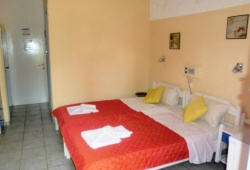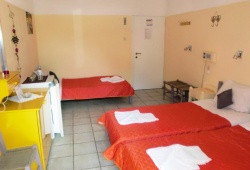 The most well-known beach in Crete, the stunning bay of Matala, is just 500 meters away from the two-star Neos Matala Hotel. There are nineteen rooms in the accommodation, three of which are designated as triple rooms (three beds). In addition to being free for kids under two, the double rooms may also be used by single people. An extra baby bed can be requested. The uniquely furnished rooms of Hotel Neos are decorated in blue and orange tones and feature tiled floors. Each room is equipped with a fridge, a radio, and a safety deposit box. Enjoying views over the blossoming garden, all rooms also feature a private bathroom with shower. There is a 100 square meter swimming pool with sun loungers that is open seasonally, surrounded by rich Mediterranean vegetation, and looks out over our large garden, which has plenty of shaded areas for lounging. Breakfast is offered, and you may lounge in the sun with a drink at the bar.