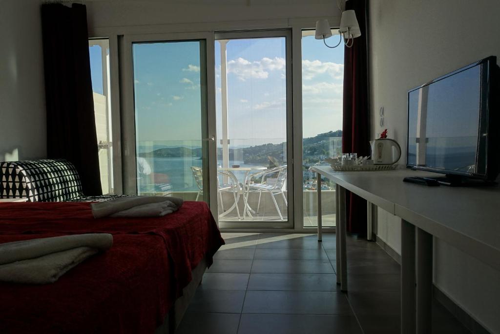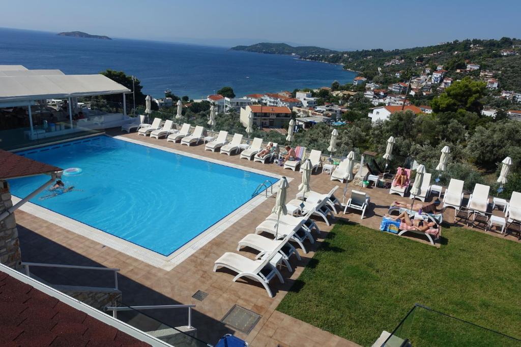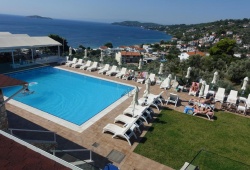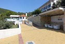 Find your next ideal accommodation option at Hotel Rene, which overlooks the expansive Megalli Ammos beach. Just ten minutes from Skiathos Town, this family-friendly hotel with a sea view welcomes you to a tranquil setting. Experience a revitalizing summer vacation from your room while taking in the stunning Aegean Sea view. Every room at the Rene Hotel has a refrigerator, TV, and air conditioning. Each has a shower in a separate bathroom. Every morning, there is a breakfast buffet in the dining room, and the pool serves snacks. You can park your car for free on the property. 700 meters away lies Skiathos Town, which has a lot of stores, bars, and taverns that serve fresh fish. Supermarkets are within a 3-minute walk of the hotel, and a bus stop is 200 meters away to explore the beautiful Greek island of Skiathos.