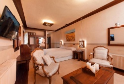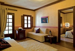 The rooms at Katogi Averoff hotel are decorated in a distinctive way with dark wood furniture and earthy colors. Each one has a minibar, DVD player, satellite TV, and flat-screen. In the bathroom are free toiletries, bathrobes, and slippers. Certain accommodations have balconies with views of the mountains of Epirus.