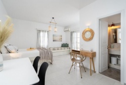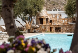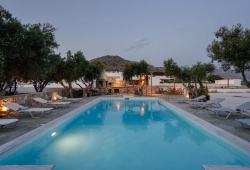 In the heart of Mikri Vigla, only 300 meters from the sandy beaches, the well-known kite surfers to the north, and the serene Mikri Vigla beach, ideal for families, sits Diamantis Studios & Apartments in Naxos. Enjoy genuine hospitality in the heart of Naxos, a coastal paradise. Choose the room type that fits you, including classic and deluxe rooms and superior apartments. All units at Diamantis have a furnished balcony overlooking the pool and the Aegean Sea, air conditioning, living room with TV and private bathroom. There is also a small kitchen with refrigerator and cooking stoves. With a swimming pool, pool bar, and stone barbecue, there is a peaceful area where you can enjoy special moments with your loved ones for free, nestled amid old olive trees in one of the hotel's most picturesque areas.