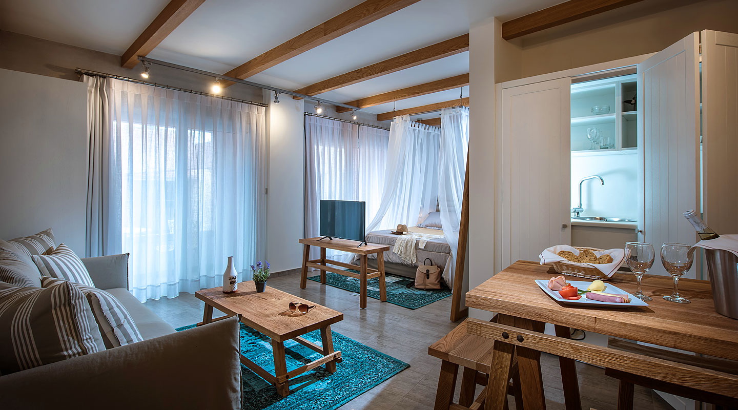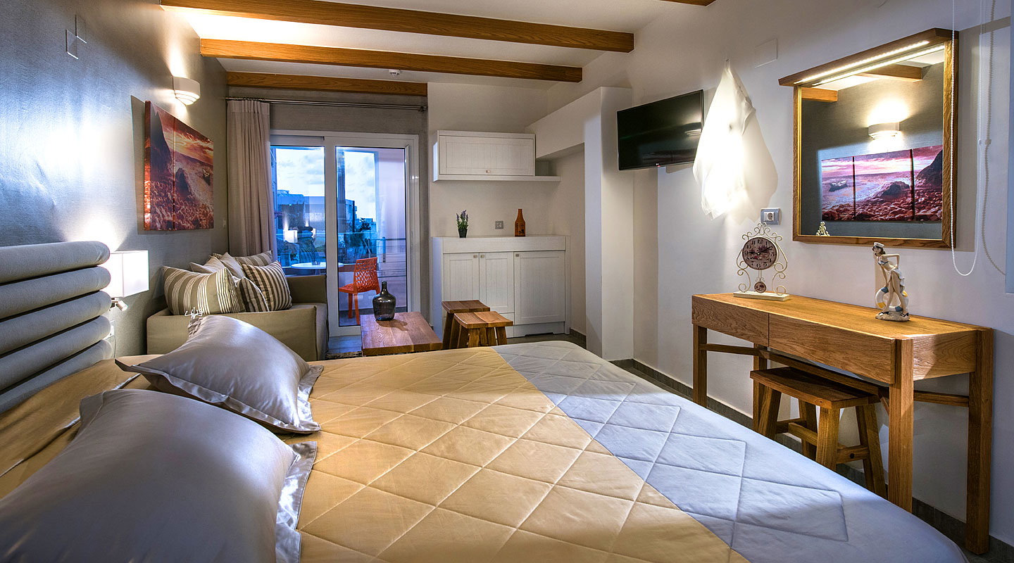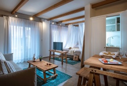 Offering luxurious accommodation, the Omiros Boutique Hotel is situated in the Misiria area, to the north of the Rethymnon district, the hotel is just 150 meters from the beach and 3,5 kilometers from Rethymnon's main town. Select between 42 opulent and spacious Classical Suites and Boho Suites for a relaxing stay in a beautifully designed, light-filled space with ornate wood accents on the furnishings and ceiling. Some of main room amenities include balcony/terrace, airconditioning, telephione, refrigerator, coffee machine, safe box, bathroom and flat screen TV. The ergonomic design of the rooms guarantees a pleasant and comfortable stay for you.