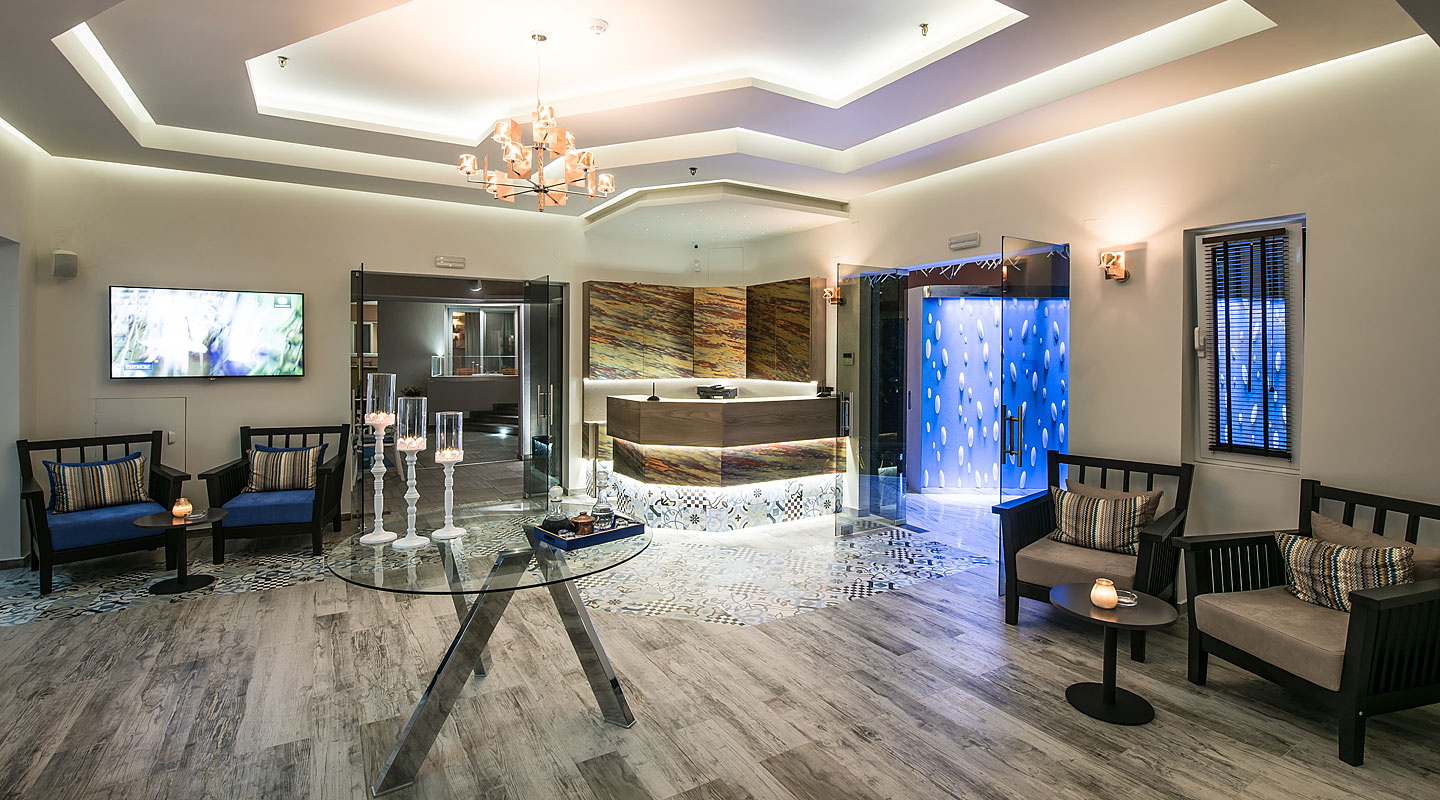Visitors who would rather have breakfast outside or who would rather have lunch or dinner al fresco are invited to utilize the swimming pool area with its cozy lounge chairs and the garden with its sun-filled balcony. The large-screen TV, the lobby, the snack bar, the open-plan kitchen with show cooking capabilities, the dining area and lounge, the library with a PC and printer, and the lounge all work together well. The built-in fireplace keeps the whole space cozy and toasty throughout the winter. If you are planning a trip to Crete and want to stay in Rethymnon, book Omiros Boutique Hotel for a memorable vacation.
