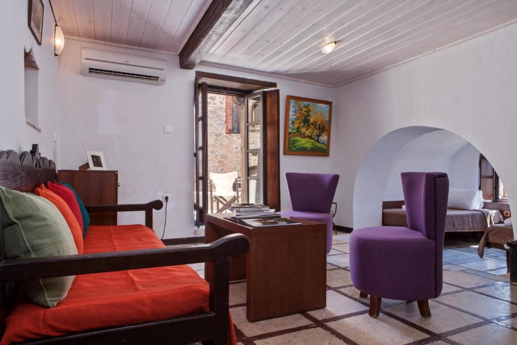 The Byzantino Boutique Hotel, housed inside the Monemvasia castle, offers you the chance to have a memorable getaway from your everyday grind while enjoying all the modern comforts and services of a medieval castle. This Monemvasia hotel is made up of several structures with classic rooms and apartments that have undergone extensive interior renovations with careful consideration for their architectural and historical significance. Made of wood and stone, each room has beautiful décor, incredibly attractive paintings, and stylish, traditional antique furnishings. They have a wooden floor, wooden beams for the ceiling, and pricey carpets, linens, and fabrics. The majority of our rooms have a stunning balcony or window overlooking the sea and the castle, which makes guests feel as though they are traveling. While every room has air conditioning, a TV, a refrigerator, and free Wi-Fi internet, the Exclusive Collection offers a few more amenities to make your stay truly exceptional. Double, triple, family, and suite accommodations are available at the Byzantino Boutique Hotel for couples, families, and friends looking for a distinctive vacation in Monemvasia.