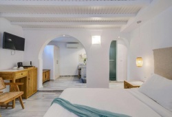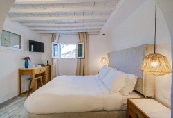 The 26 completely renovated rooms of the Madalena Hotel are situated in a serene setting with stunning views. The city center is only a quick five-minute walk away, so you can quickly reach the hub of Mykonos! Air-conditioned rooms including a coffee maker, TV, safety deposit box, and private bathroom with shower will be available to visitors at the hotel. All rooms come with an electric teapot; some additionally have balconies, and some have views of the city. Includes a snack bar for cool beverages after a long day of touring as well as a swimming pool for relaxation.