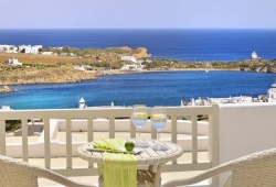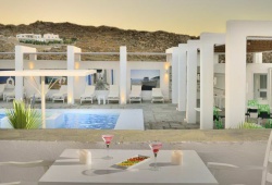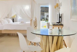 Air-conditioned suites and rooms have furnished private balconies, a lounge space, and a flat-screen TV with satellite channels. The hotel has coffee makers, hair dryers, and ironing stations in each room. In the private bathroom are Korres toiletries. Additionally, some apartments include a private hot tub or pool. Every day, an extensive American breakfast buffet is offered to guests, who are welcomed with a welcome drink. Breakfast is served floating in the tranquility of the guest's own pool for those who book a hotel with a private pool. The spa facility offers hammam, hot tub, hair, beauty, and facial treatments in addition to massages. The restaurant La Veranda offers creative Mediterranean food made using local Greek ingredients. Signature drinks are available at the lobby bar of the Palladium, which has a starry pool and views of the Aegean Sea. Refreshing beverages and lounge-style loungers are available at the poolside bar. An additional choice is a snack bar. Mykonos town and Mykonos airport are 10-minute drive away from Palladium Hotel Mykonos.