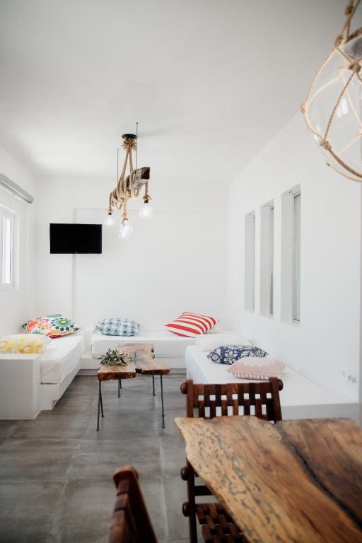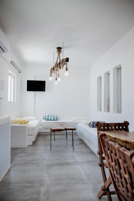 The apartments can host two to four people and are quite roomy and well decorated. They have a dining table, refrigerator, and air conditioning. Enjoy the property's swimming pool and bar for your fun and relaxation. Manthos The place has an excellent view of the sea and is only a short distance from the beach. Additionally, the port of Ios is ten minutes away and Chora is five minutes away via bus. All areas of the wider Ios area are easily accessible from Manthos Place via public transit, including buses and taxis.