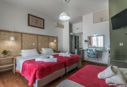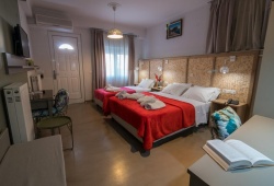 Aklidi Hotel located in Mytilini, Lesvos, is a family establishment away from the noises of the city, and it is open all year-round. Built with taste and craving, it offers unique moments of rest, calm, and personal treatment to its visitors. It has everything a family or a couple needs for a pleasant break from every day’s routine. Throughout your stay, the ever-friendly Aklidi team will be available to provide you with information on exploring Lesvos. At Aklidi hotel, every room has a private bathroom and is spacious and light. A TV, a terrace, and air conditioning are among the amenities. The entire hotel has complimentary Wi-Fi. Guests may relax in the flower-filled hotel courtyard while eating breakfast or just to get out of the sun. Coffee and refreshing beverages are available in the hotel bar.