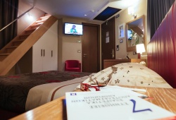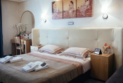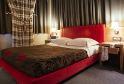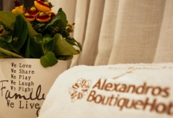 The earthy-hued rooms at Alexandros Boutique Hotel are tastefully furnished with orthopedic beds. They have air conditioning, a hairdryer, and a satellite LCD TV in addition to being soundproof. They also have a minibar and a kitchenette. The Hotel Alexandros has a fully-equipped fitness center and a sauna. Breakfast is served daily and lunch or dinner is also provided.