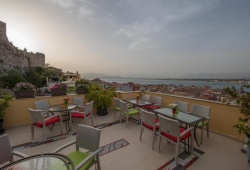 The Amfitriti Palazzo is a quaint hotel in the ancient town that puts you right in the center of Nafplio's rich heritage of culture.Nestled behind the citadel of Akronafplia in the heart of Nafplio's historic area, the Amfitriti Palazzo welcomes you to experience luxury and breathtaking views. The elegantly decorated rooms, which vary in design and style, provide opulent facilities and sophisticated décor. Every room has a minibar, satellite TV, a hair dryer, cosmetics, and a spa bath or hydro-massage shower jets. Breakfast is served every morning to start the day for activities. The hotel is close to all the attractions of Nafplio's old town, including museums, the three castles (Palamidi, Akronafplia, and Bourtzi), galleries, dining options, contemporary shops, and bars.