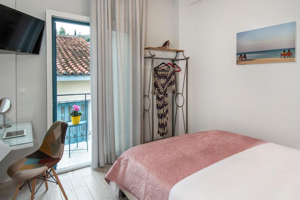 As the name implies, the Downtown Hotel Nafplio is situated in the center of Nafplio's old town and has eight rooms and two suites spread across four floors.All of the rooms at the DownTown Hotel have air conditioning, a refrigerator, a flat-screen TV, a desk, a private bathroom with a shower and a hair dryer, and some have a patio. There are balconies with views and free WiFi available throughout the property. Bourtzi, Nafplio Syntagma Square, and the Archaeological Museum of Nafplion are popular tourist destinations close to the accommodation. The distance to Kalamata International Airport is 141 kilometers.