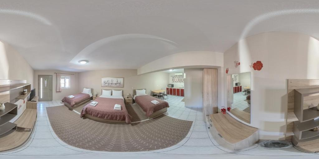 Vasilis Hotel, on a verdant hill, has rooms with balconies and kitchenettes with views of the Argolic Gulf and Nafplio. Free Wi-Fi and free on-site private parking are available. The Hotel Vasilis's rooms are especially roomy and include windows that extend from floor to ceiling. Every one of them has a tiny kitchen where you can quickly make meals. They have a TV, air conditioning, and a separate bathroom with a hair dryer and a shower. A grocery is within 5 minutes' walk from Hotel Vasilis, while Nafplio's town is 1.5 km away.