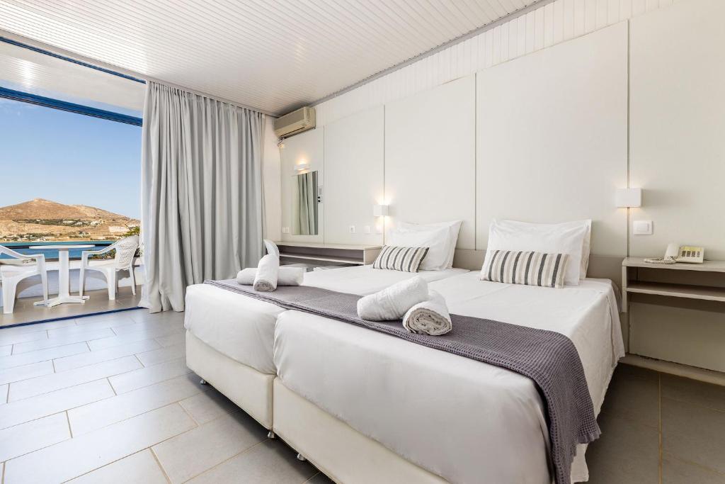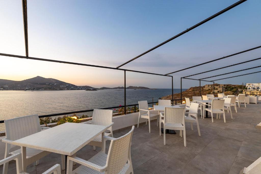 There is a lounge with free WI-FI, satellite TV, a bar, a place to check bags, a public library, and table tennis inside the hotel. The bilingual team at reception provides information services, including motorbike and car rentals, to all of all guests throughout the day. In front of the hotel is a parking lot, bus stop, and daily cleaning service. Breakfast is served buffet style in the restaurant's roof garden, which offers a breathtaking view of Kolymbithres Bay and the Gulf of Naoussa, where the Aegean Sea and the sky meet.