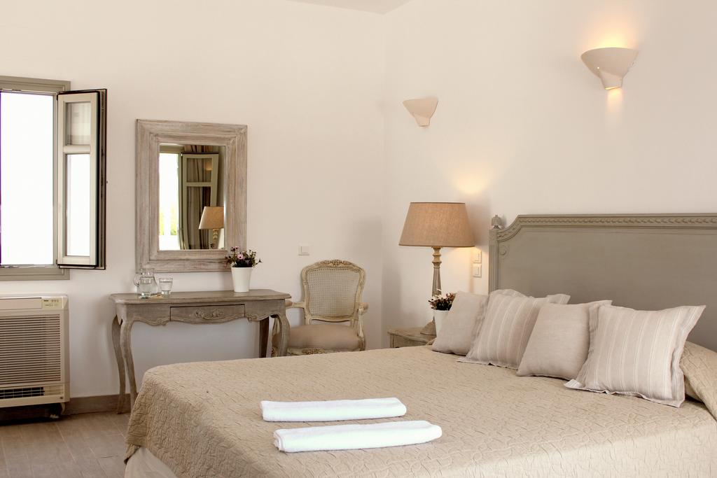The 56 rooms and suites of the Saint Andrea Seaside Resort, which is situated in Naoussa, Paros, are attractively furnished with Blanc D'Ivoire furniture, modern elegance, and exceptional comfort. The Saint Andrea Seaside Resort provides opulent four-star accommodation with views of Naoussa Bay and Kolympithres Beach. The private porches of Saint Andrea's suites provide partial views of the garden or the Aegean Sea. They all feature cable and satellite TV and air conditioning. Every one has a coffee maker and mugs so you can enjoy your beverage. The hotel's main feature is a large lagoon-style pool with sun loungers and a poolside bar that serves wine and mixed drinks. In Saint Andrea's restaurant, Mediterranean food prepared with local, fresh vegetables is provided, along with a breakfast buffet.