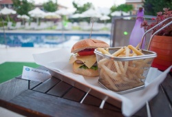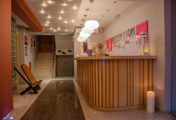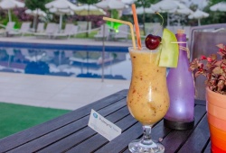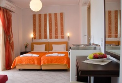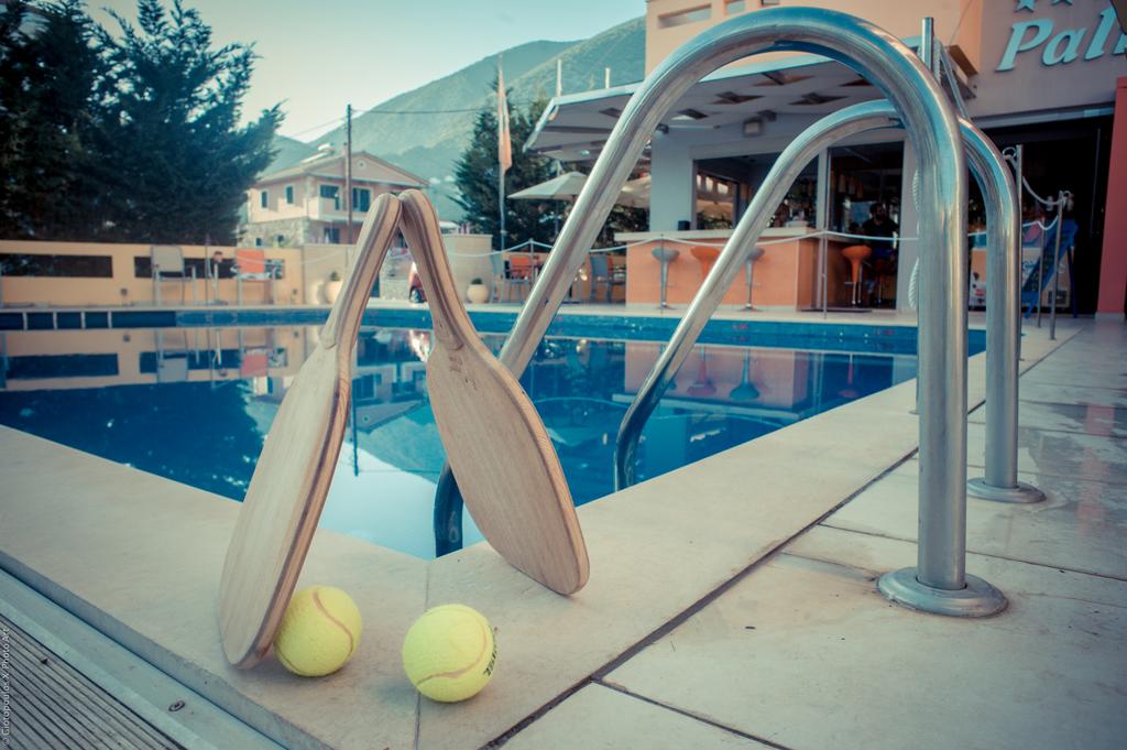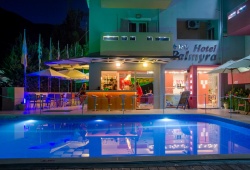 The Palmyra Hotel in Nidri is located between the sea and Lefkada Island's lush vegetation. The thirty rooms are well-proportioned, cozy, and furnished with all the amenities one might want for a guest accommodation. With their modern furnishings, spacious bathrooms, and compact kitchenettes, the apartments are bright and airy. The family room, which has two bedrooms joined by an inside door, is around 35 m2, while the double rooms are between 18 and 25 m2. The rooms provide either a partial sea view or a pool-mountain view. Other room amenities include airconditioning, TV, safe box, and internet access. Enjoy the pool area with comfortable sunbeds to relax or head to the bar for a refreshing drink.