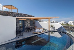 Elea Resort is a first-rate vacation spot in Santorini designed to provide tranquility and exceed your expectations in a setting of stylish, sophisticated luxury. Indulge in a spa treatment, take advantage of the library, unwind by the pool or on the sunbathing deck, swim in the beautifully designed surroundings, swim under the Cycladic sun and among the seductive sounds and scents of the Greek summer, or just daydream while taking in the unmatched Mediterranean light during the day or the breathtaking sunset in the evening. Elea resort has 17 luxury suites are lavishly and tastefully decorated. They come with air conditioning, TV, refrigerator, kettle, Hair dryer, bathroom & amenities, Wifi, balcony and safe box. Elea Resort in Oia, Santorini, is sure to become your one-and-only haven of complete relaxation in the end.