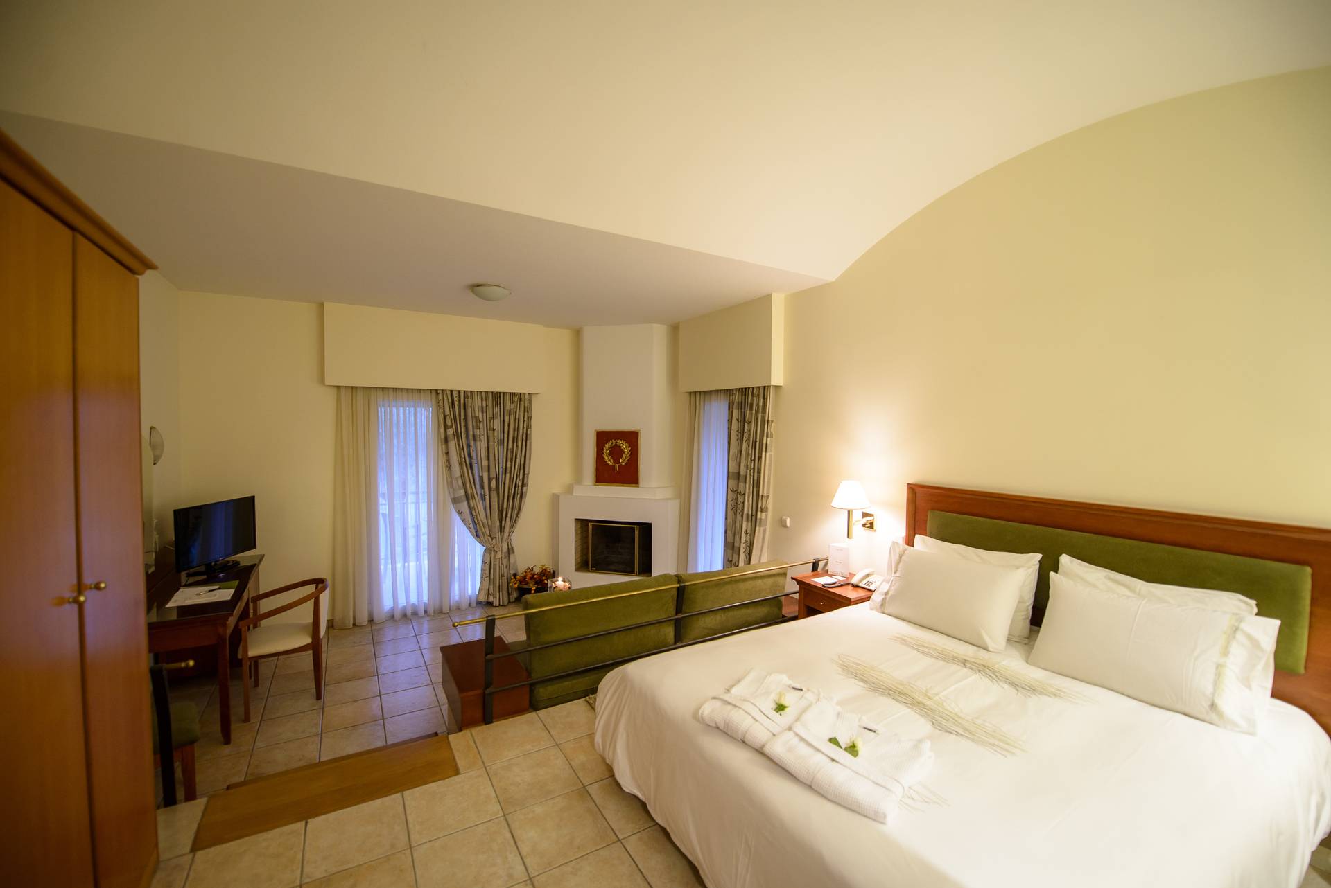 The Olympion Asty hotel is situated in one of the most ancient areas of the Peloponnese and is only a short distance from the famous archaeological site and its museums, offering the ideal starting point for touring Ancient Olympia, the neighboring sites of this culturally vibrant area, and the city center while being encircled by serene nature. Featuring a complete list of amenities, guests will find their stay at the property a comfortable one, including Wi-Fi in all areas, an outdoor pool, a children's playground, a restaurant, and a bar for your entertainment. The rooms are spacious and come with air conditioning, a TV, a mini bar, a kettle, a safe box, and a bathroom with a hairdryer. Experience Ancient Olympia during your stay at the Olympion Asty hotel, which holds immense historical and cultural importance. You can explore ancient Greek culture and civilization, as well as the Olympic Spirit (Olympism) philosophy, at the Archaeological Site and Museums, which are both within walking distance of Olympia's core. The old Olympic Stadium, the Temple of Hera, the Leonidion, the Temple of Zeus, and Praxiteles' sculpture of Hermes are just a few of the numerous structures you will encounter.