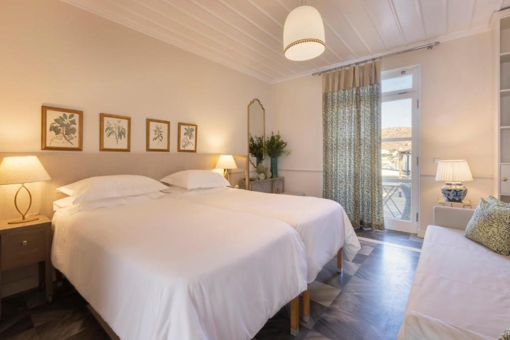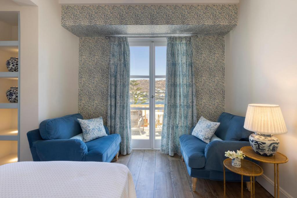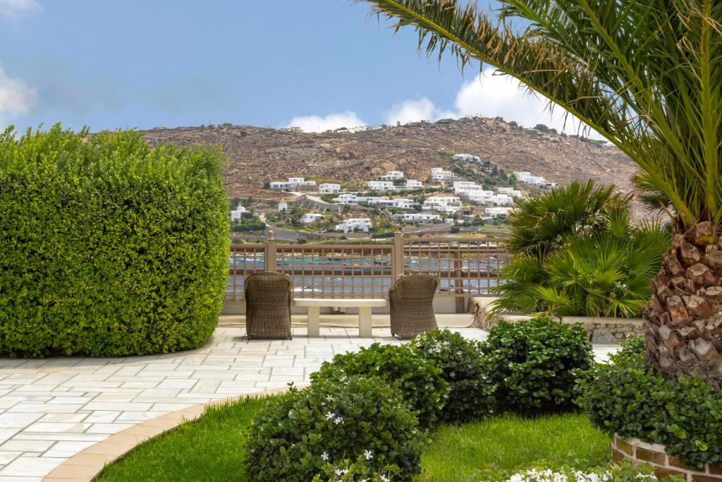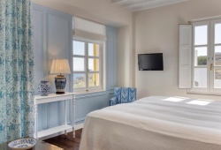 In the center of Ornos, the elegant boutique hotel Dorion promises a memorable vacation to Mykonos, Greece! Exquisiteness, extravagance, and coziness rule the stunning Dorion Hotel. The accommodation offers a blend of traditional Mykonian atmosphere and metropolitan English style to visitors from all over the world, all in an effort to deliver top quality services in a friendly and welcoming setting. The Dorion Hotel, designed in the Cycladic style, has a lovely pool area, a blooming garden with a relaxing environment, a large sitting room, a library, and a bright breakfast room where visitors may relax, read, or sunbathe. Within the grounds is a chapel that has been painted white. The rooms have a lovely balcony with cozy outdoor furniture and breathtaking views of the sea, as well as a large, elegant marble bathroom with a bathtub and amenities. Savor the finest of Greek hospitality while staying at the Dorion Hotel in Mykonos.