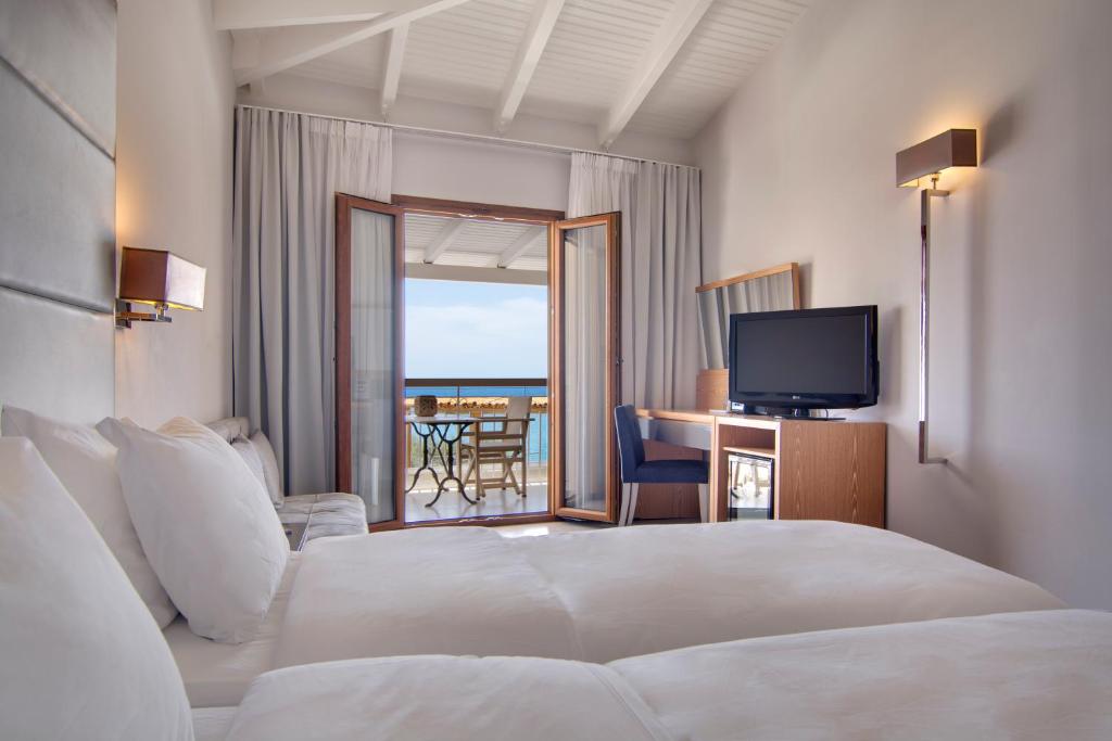 Situated on the mile-long Valtos beach, the hotel is encircled by a lush landscape and an abundance of olive trees. The most well-known and stunning beach in the region is Valtos Beach, which is only one kilometer from the town center of Parga. The Valto Beach hotel is renowned for its warm and welcoming atmosphere. The 76 rooms of the accommodation provide views of the Venetian Castle and the vast Ionian Sea. Families, couples, friends, and solo travelers will all find the Valtos Beach Hotel to be excellent. Each of the rooms and suites has a modern décor with a touch of heritage, and all include air conditioning, flat-screen TVs, satellite channels, mini fridges, and hair dryers. Additionally, several types of lodging include a kitchenette, a bathtub, or even a walking shower.